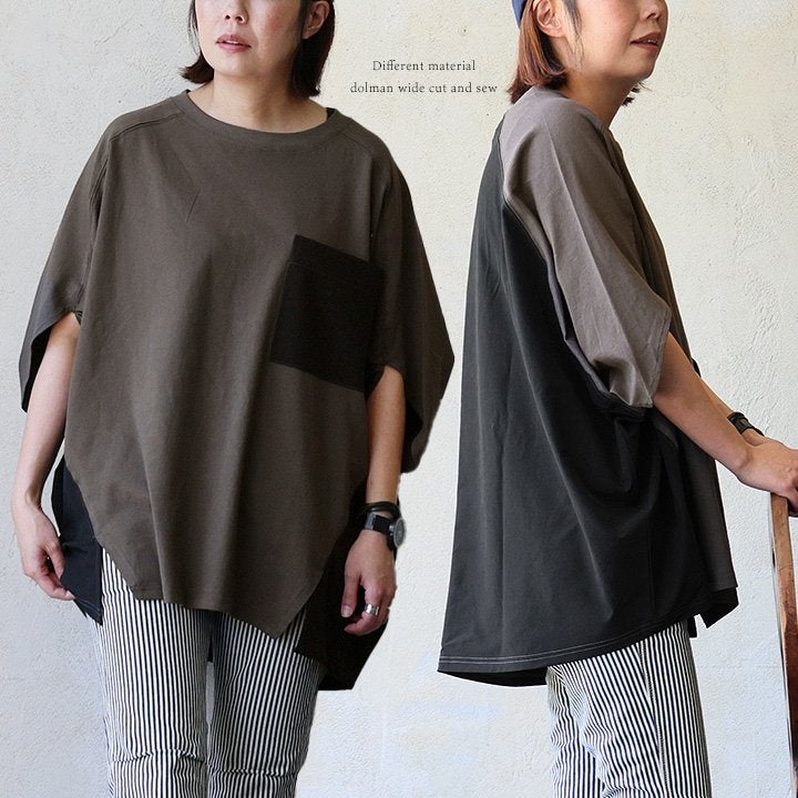 着痩せ重視に見せない、「ひとクセ」ある生地アソビ。 【メール便50】 カットソー 5分袖 レディース クルーネック お尻隠れる 着痩せ 綿100 コットン ナイロン リップストップ 薄手 通気性 ゆったり 大きいサイズ 体型カバー カジュアル 夏 パティ