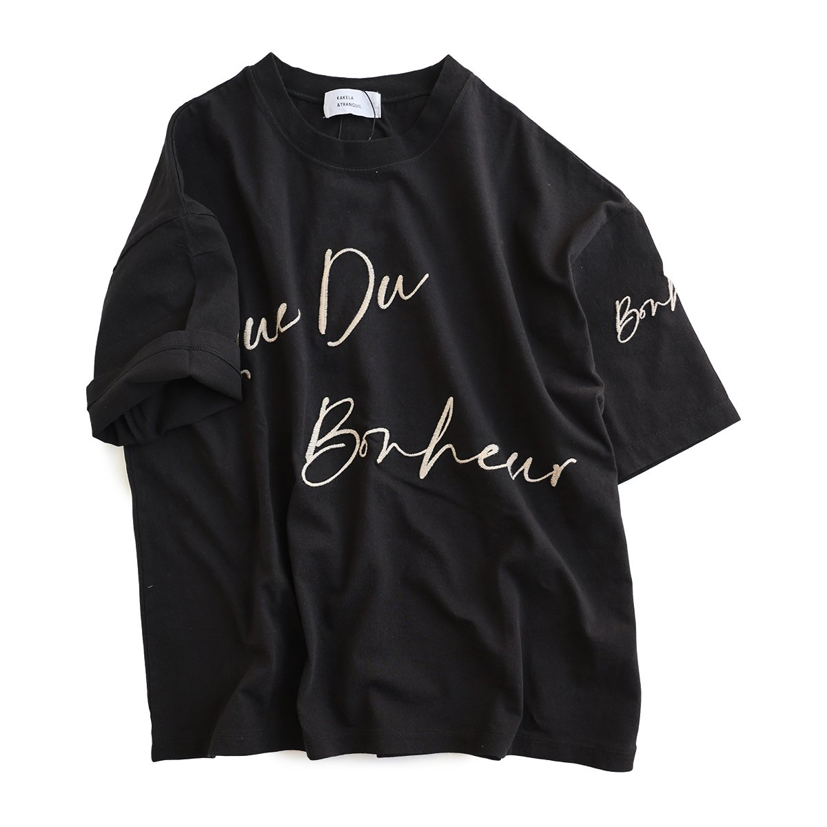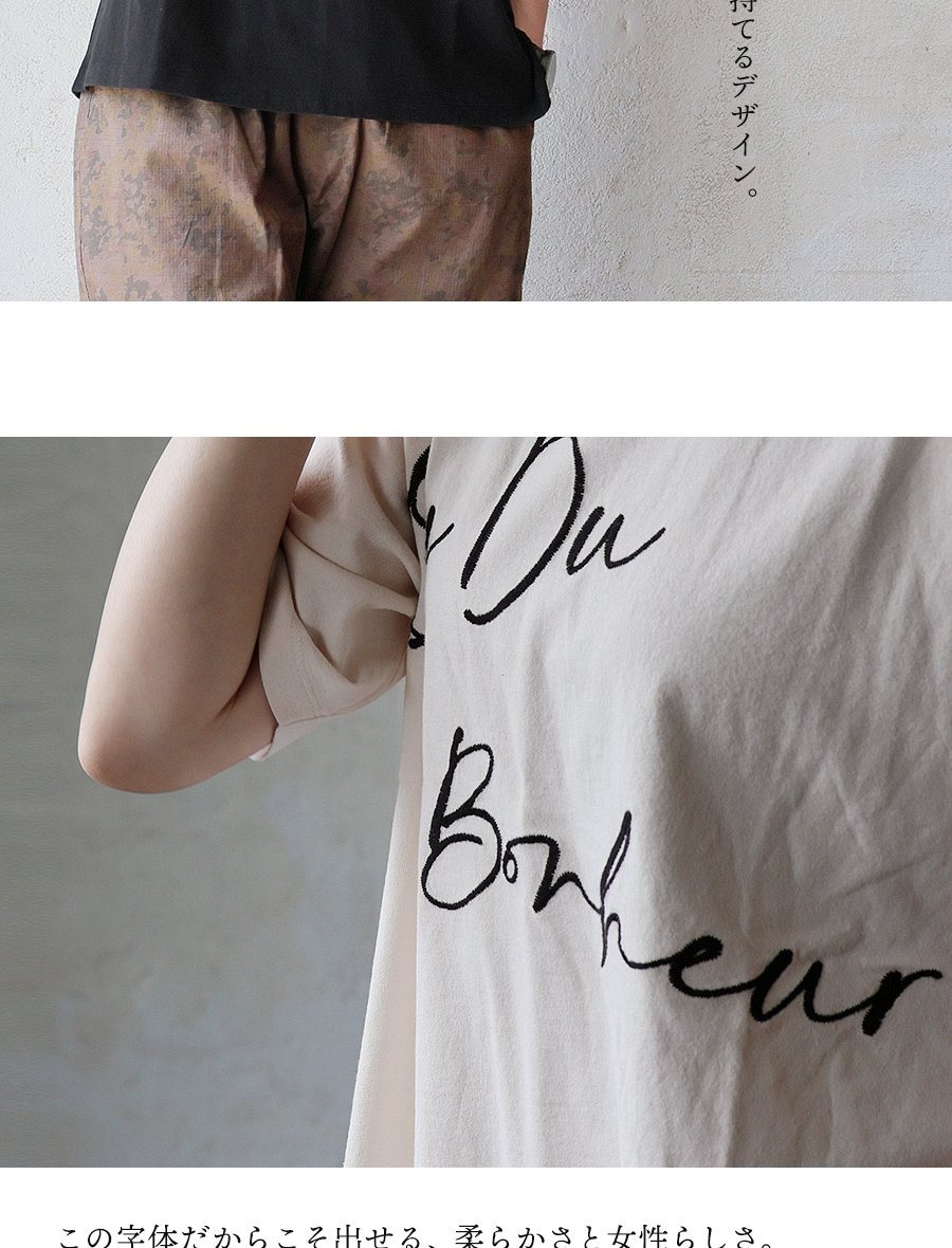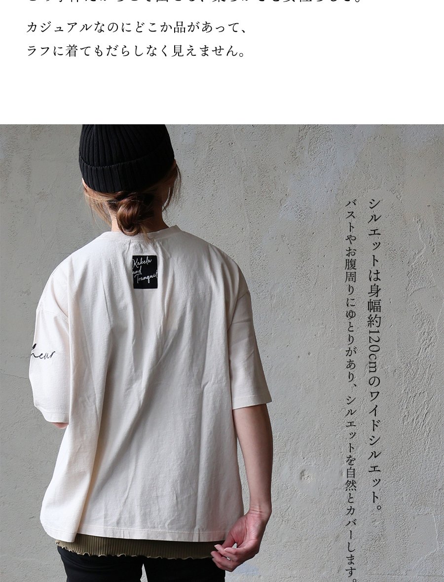 頑張らなくても、一枚着がサマになる。 【メール便50】 KAKELA&TRANQUIL カケラ&トランクイル Tシャツ 5分袖 レディース クルーネック 配色 ロゴ刺繍 綿100 コットン 薄手 通気性 涼しい ゆったり 大きいサイズ 体型カバー カジュアル 夏 パティ
