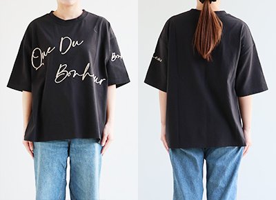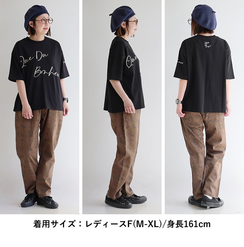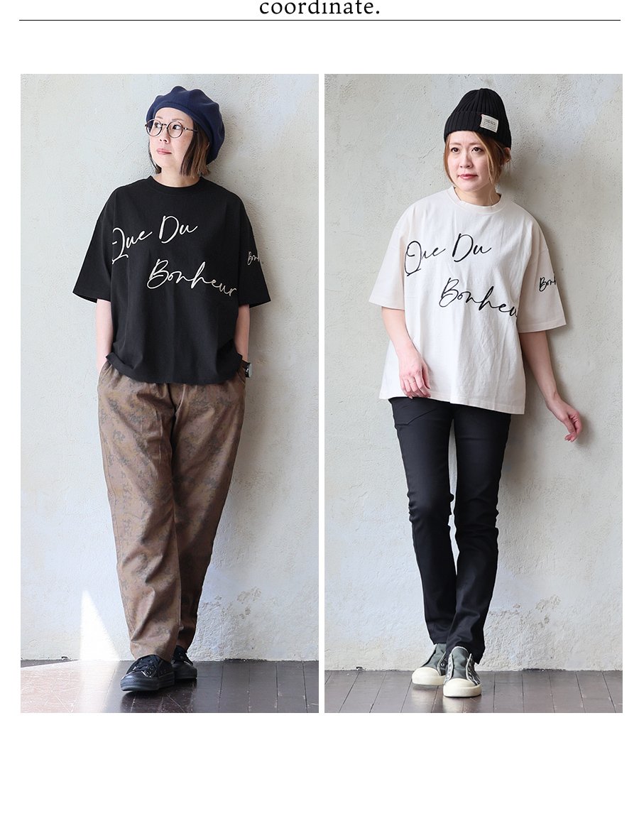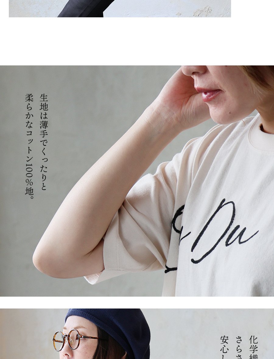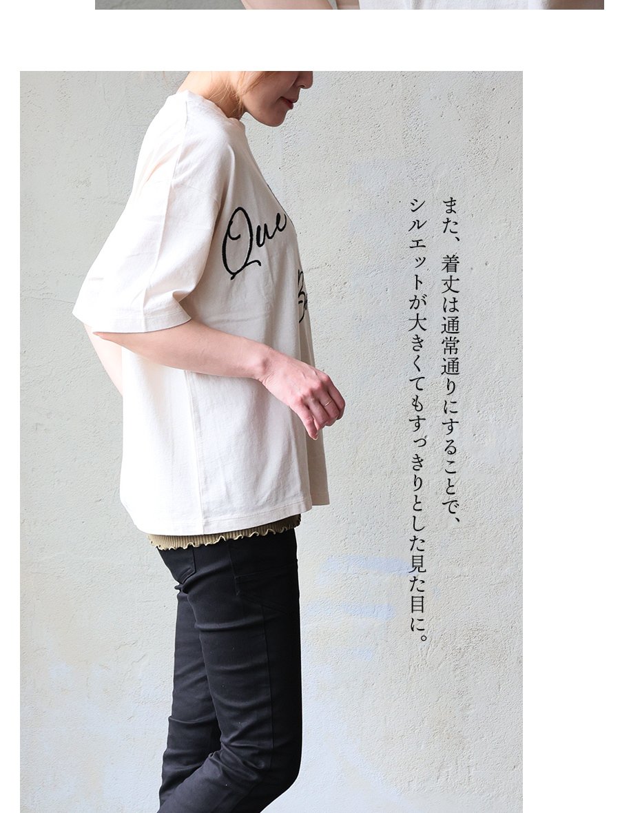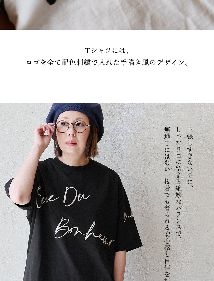 6. 【メール便50】 KAKELA&TRANQUIL カケラ&トランクイル Tシャツ 5分袖 レディース クルーネック 配色 ロゴ刺繍 綿100 コットン 薄手 通気性 涼しい ゆったり 大きいサイズ 体型カバー カジュアル 夏 パティ