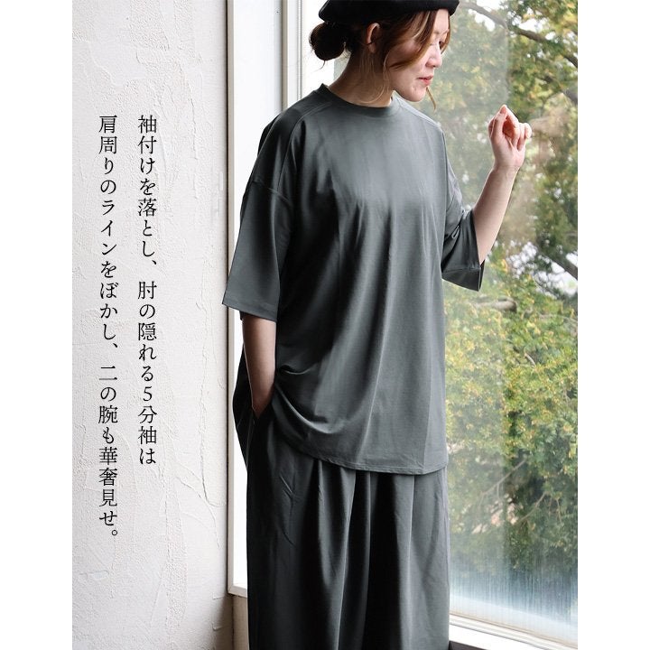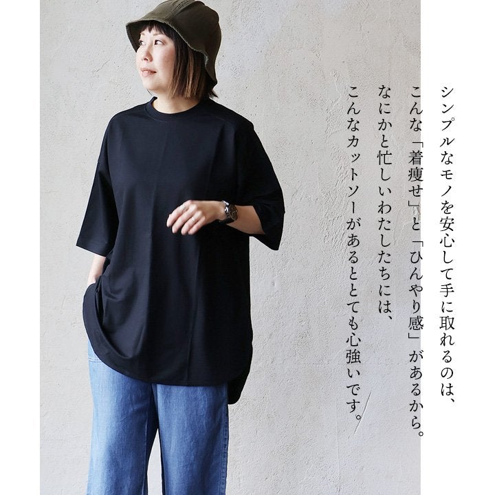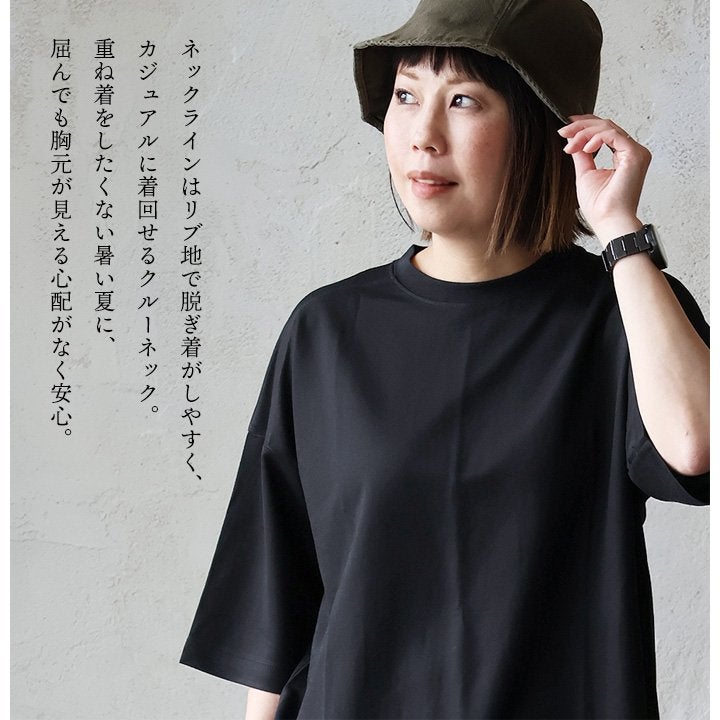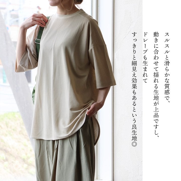 他の画像を見る シンプルな中に、安心出来る「着痩せ」と「ひんやり感」。 【メール便50】 カットソー 5分袖 レディース クルーネック すっきり 着痩せ 体型カバー 無地 レーヨン 接触冷感 ひんやり 涼しい 軽い お尻隠れる 二の腕カバー 伸縮性 動きやすい カジュアル 夏 パティ 2~3日でお届け POINT5倍 販売価格 ¥ 2,970 税込 カートに入れる お気に入りに登録する