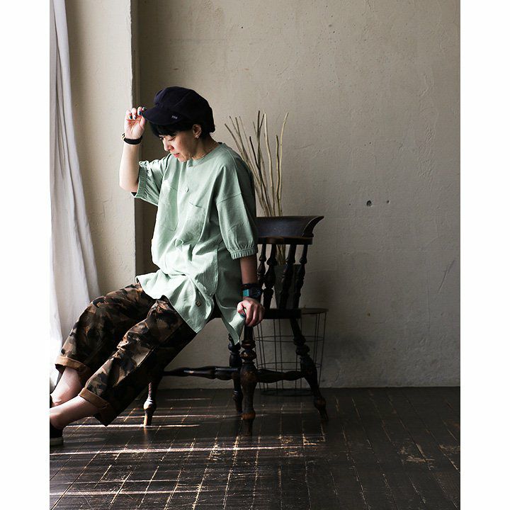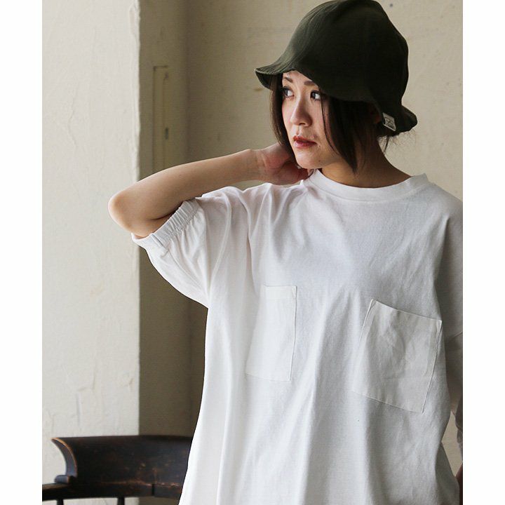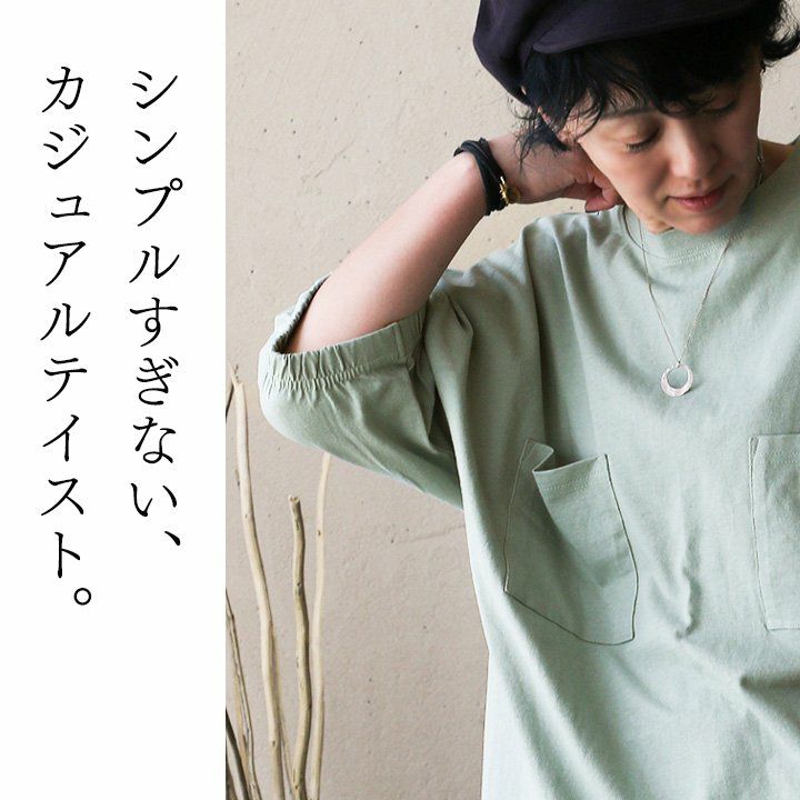 拘るからこそ、映える定番。 Tシャツ 5分袖 レディース クルーネック ポケット 刺繍 綿100% コットン 天竺 ピグメント加工 褪せ色 しっかり生地 丈夫 大きいサイズ ゆったり 体型カバー カジュアル 夏 夏服 パティ KAKELA&TRANQUIL カケラ&トランクイル