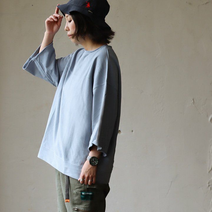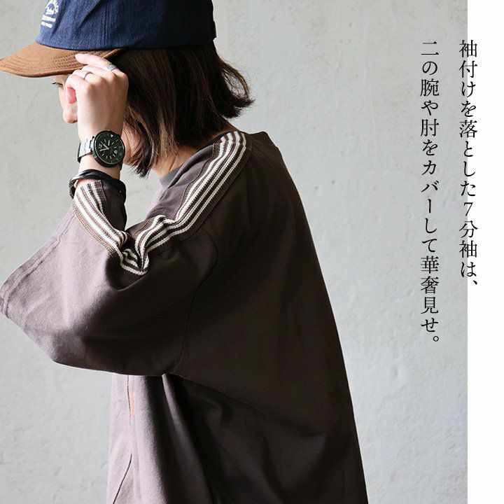 独特で、無骨で、メンズなニオイ。 Tシャツ 6分袖 レディース クルーネック リブ切り替え ケミカルデニム 綿100 コットン 薄手 柔らか 軽い ゆったり 大きいサイズ 体型カバー お尻隠れる カジュアル パティ