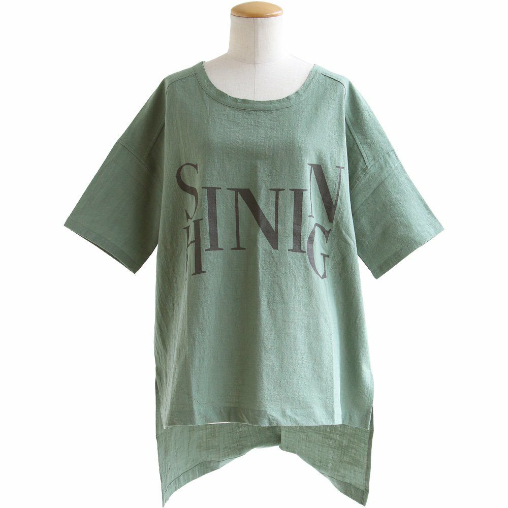 前も後ろも、これなら安心。 着痩せ すっきり tシャツ ワイド 5分袖 夏 レディース プリント 薄手 涼しい 綿100 コットン 二の腕 お尻 体型カバー カジュアル パティ KAKELA&TRANQUIL カケラ&トランクイル