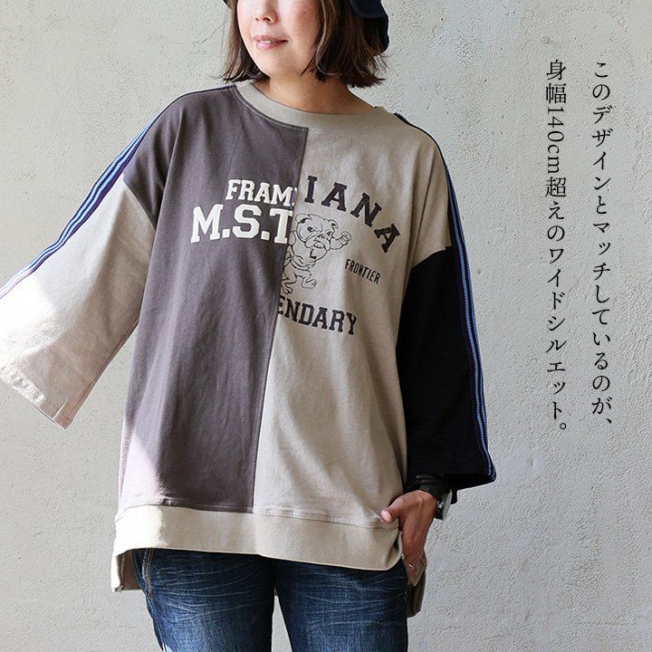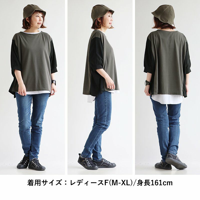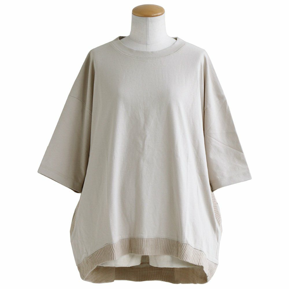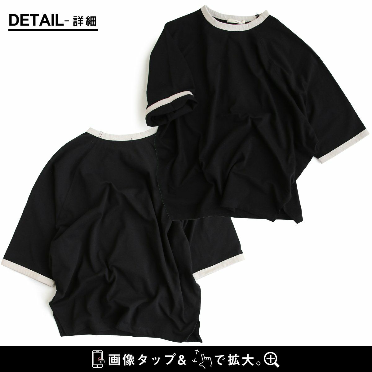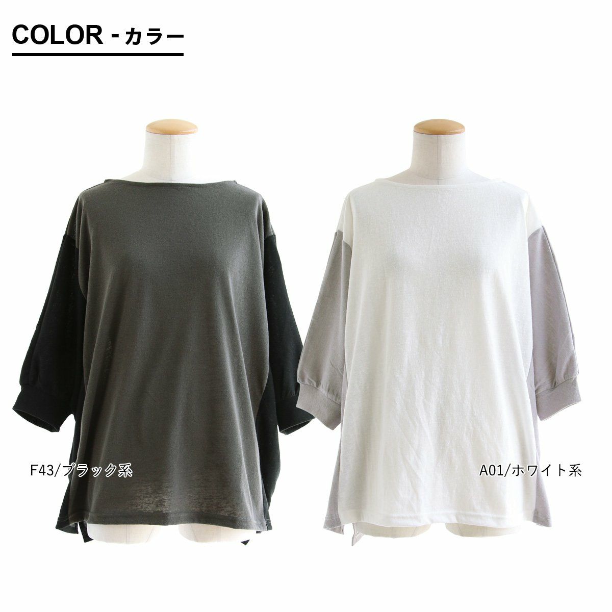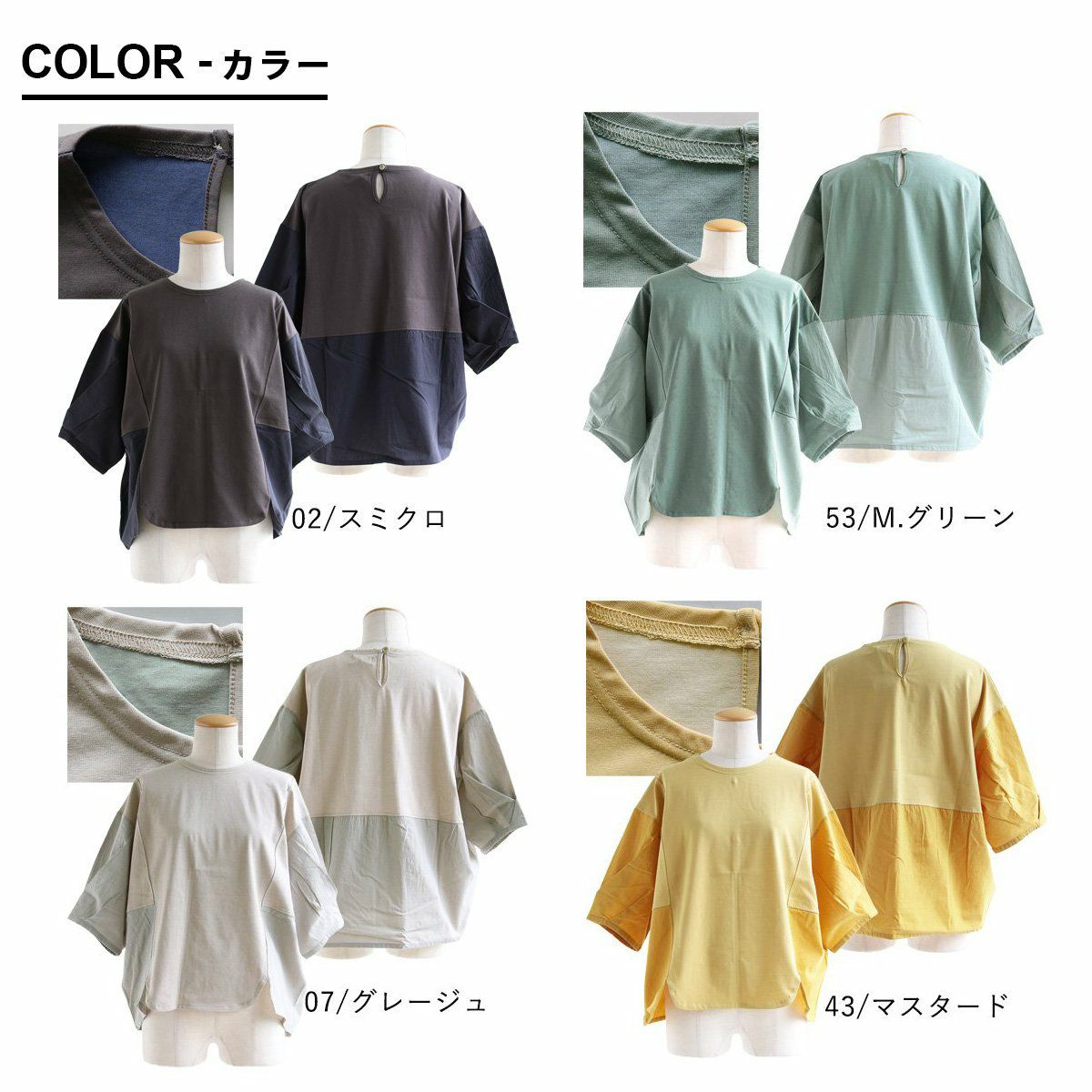 手を伸ばしたくなる、「細見えする仕掛け」。 【メール便50】 【訳あり】 カットソー 5分袖 レディース ワイド ダブルフェイス 配色 異素材切り替え 綿100% コットン 薄手 着痩せ すっきり 大きいサイズ カジュアル 夏 パティ