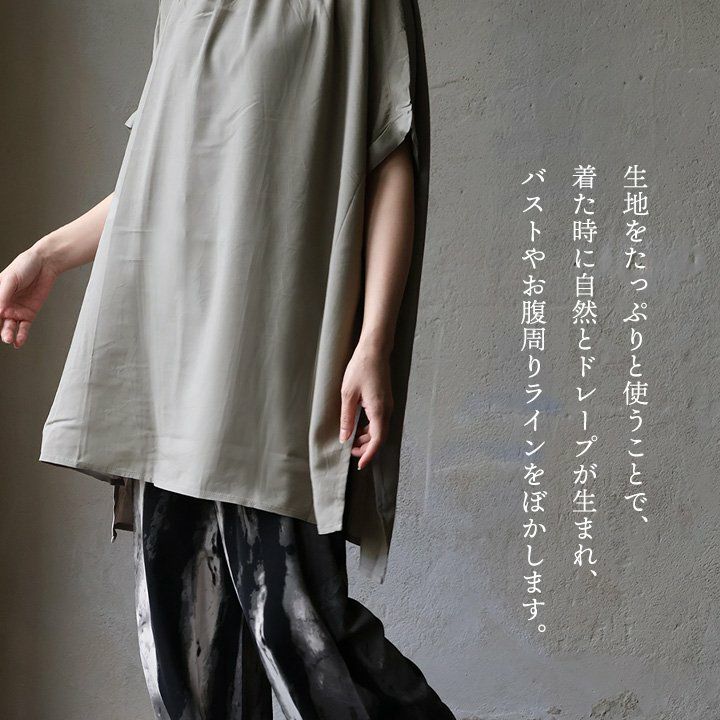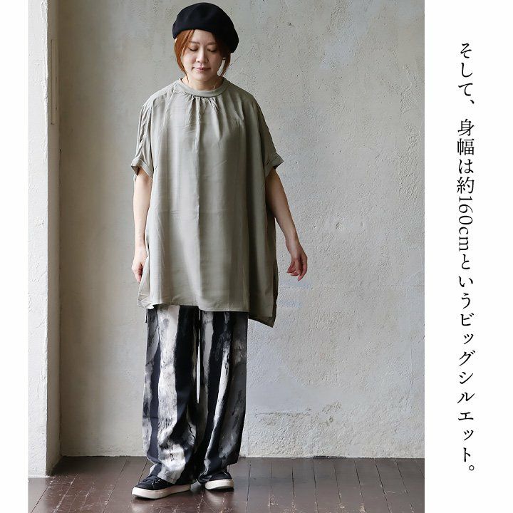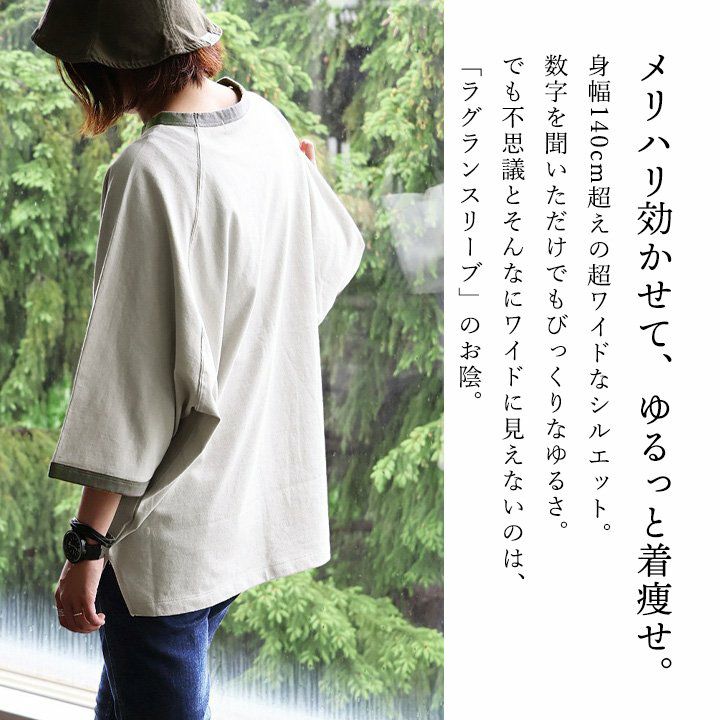 ゆるいのに、着痩せも遊びも、しっかり抜かりなし。 【メール便50】 【訳あり】 着痩せ ワイド カットソー 五分袖 レディース 夏 Vネック 二の腕 お尻 体系 カバー 大人 カジュアル パティ