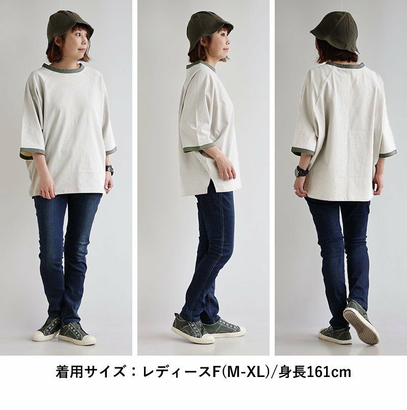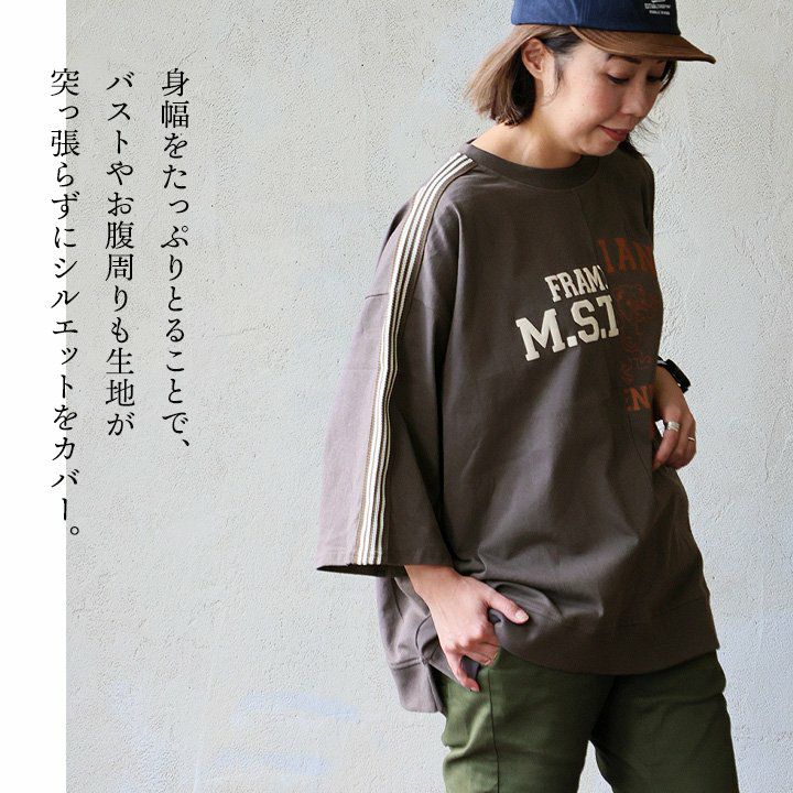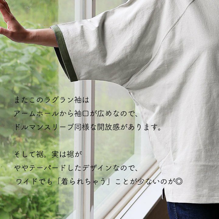 懐かしい風合いに惹かれる。 着痩せ すっきり tシャツ ワイド 五分袖 5分袖 ラグラン 夏 レディース 配色 切り替え プリント綿100 コットン 二の腕 お尻 体型カバー カジュアル パティ KAKELA&TRANQUIL カケラ&トランクイル