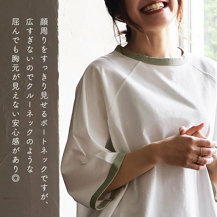 着痩せ狙いに見せない、独特な「色合い」「カタチ」。 【訳あり】 Tシャツ 5分袖 ドルマン レディース ボートネック 着痩せ すっきり 配色 スラブ 伸縮性 薄手 軽い 涼しい 体型カバー 大きいサイズ ゆったり カジュアル 夏 パティ GENTIL ジャンティ