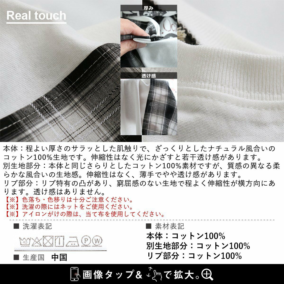このくらいガッツリな「リメイクTシャツが欲しかった!」 【メール便50】 【訳あり】 Tシャツ バンドT 5分袖 レディース クルーネック リメイク 配色 チェック柄 プリント 綿100% コットン 天竺 16番手 タフ 大きいサイズ ゆったり 体型カバー カジュアル 夏 夏服 パティ