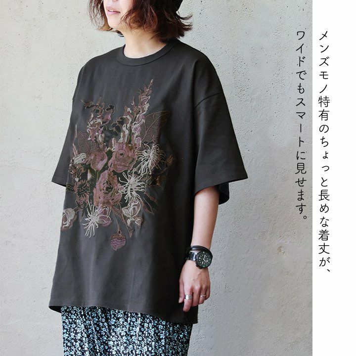 魅せる「刺繍」。 【訳あり】Tシャツ 5分袖 レディース クルーネック 花 刺繍 夏 綿100 コットン ゆったり 大きいサイズ 体型カバー カジュアル パティ