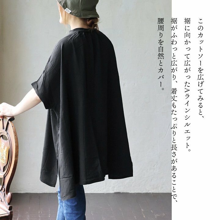 やりすぎていないのに、この存在感。 着痩せ すっきり tシャツ ワイド 5分袖 夏 レディース リメイク風 無地 刺繍 切り替え 綿100 コットン 二の腕 お尻 体型カバー カジュアル パティ KAKELA&TRANQUIL カケラ&トランクイル