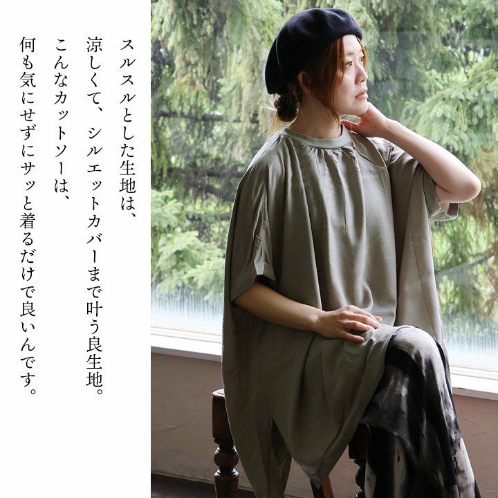 何も気にせずに着られて、涼しく、シルエットカバーまで。 カットソー 5分袖 レディース クルーネック 無地 レーヨン 接触冷感 薄手 涼しい 軽い 体型カバー 着痩せ 大きいサイズ カジュアル 夏 パティ