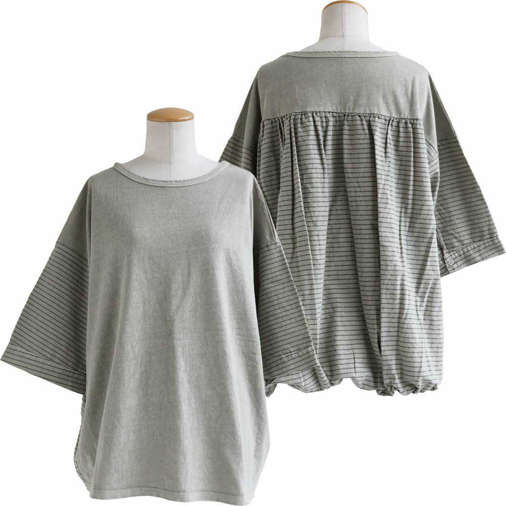 このカタチでこの素材は、「安心感」に差がつく。 【訳あり】 カットソー 7分袖 レディース ドルマン 着痩せ すっきり 異素材切り替え 綿100% コットン 天竺 布帛 ボーダー 薄手 伸縮性 ゆったり 体型カバー カジュアル 夏 夏服 パティ