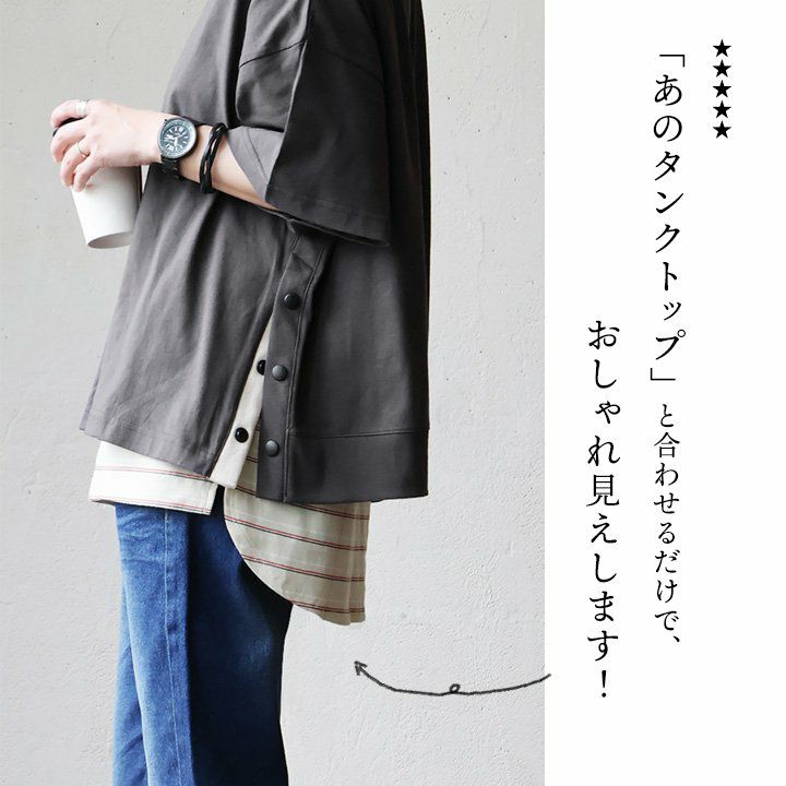 他の画像を見る ★★★★★ 「あのタンクトップ」と合わせるだけで、おしゃれ見えします! 【メール便50】 Tシャツ 5分袖 レディース クルーネック 脇 サイド ボタン開き 綿100% コットン しっかり生地 タフ 伸縮性 通気性 半袖 ゆったり 体型カバー 大きいサイズ すっきり カジュアル 夏 パティ Souple スプル 2~3日でお届け 販売価格 ¥ 3,630 税込 在庫切れ カートに入れる お気に入りに登録する