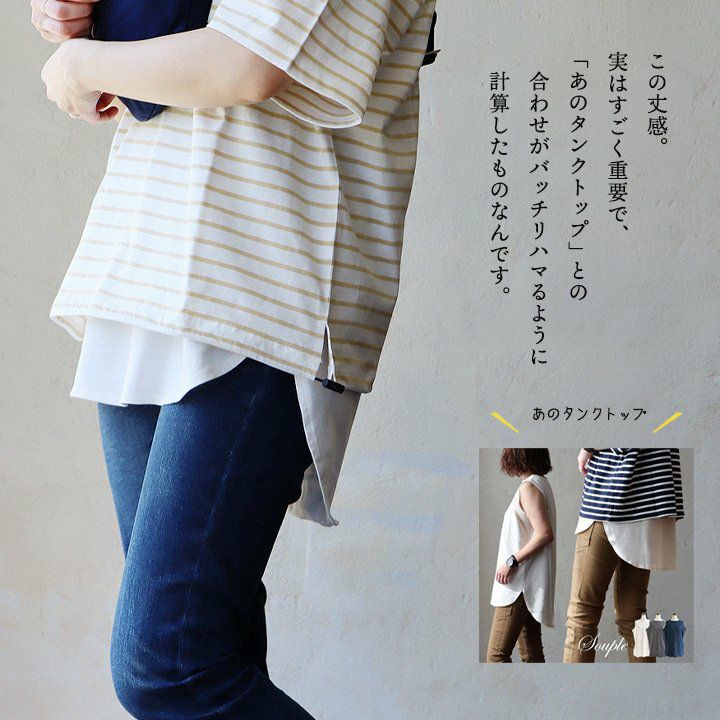 他の画像を見る ★★★★★ 「あのタンクトップ」と合わせるだけで、おしゃれ見えします! 【メール便50】 Tシャツ 5分袖 レディース クルーネック ボーダー ポケット 切り替え 綿100% コットン しっかり生地 タフ 伸縮性 通気性 半袖 裾コード ゆったり 体型カバー 大きいサイズ すっきり カジュアル 夏 パティ Souple スプル 2~3日でお届け 販売価格 ¥ 3,190 税込 在庫切れ カートに入れる お気に入りに登録する