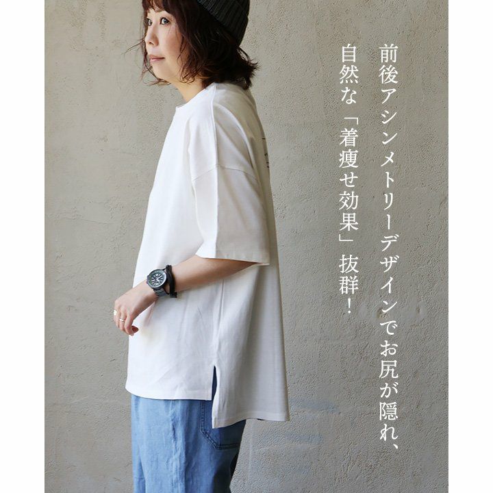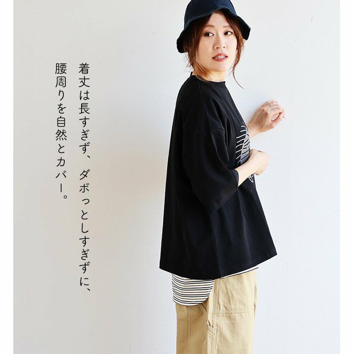 他の画像を見る 着痩せも、推し活にも!?安心して着られる。 Tシャツ 5分袖 レディース お尻隠れる 着痩せ ロゴプリント 綿100% コットン 天竺 伸縮性 通気性 体型カバー 大きいサイズ ゆったり カジュアル 夏 パティ 2~3日でお届け 販売価格 ¥ 3,520 税込 在庫切れ カートに入れる お気に入りに登録する