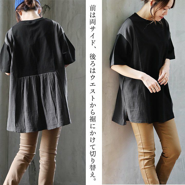 他の画像を見る 統一感ある大人の異素材アソビ。 着痩せ すっきり tシャツ ワイド ロング丈 5分袖 夏 レディース 無地 異素材 切り替え 綿100 ダブルガーゼ 二の腕 お尻 体型カバー カジュアル パティ KAKELA&TRANQUIL カケラ&トランクイル 2~3日でお届け 販売価格 ¥ 7,150 税込 在庫切れ カートに入れる お気に入りに登録する