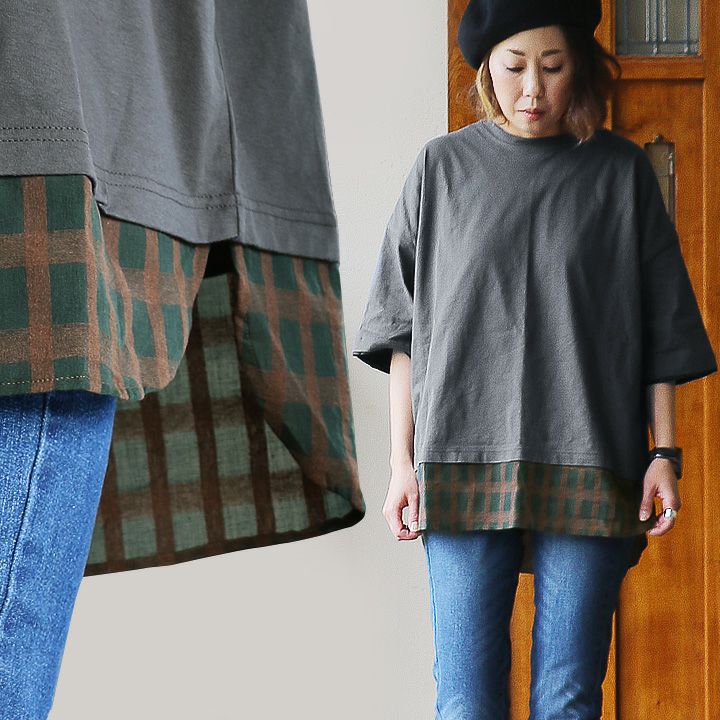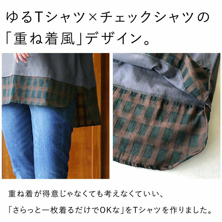 他の画像を見る 重ね着が苦手な私でも、これならカンタン、スッキリ、安心。 Tシャツ 半袖 レディース お尻が隠れる 無地 チェック柄 配色切り替え チャコール 綿100% 通気性 薄手 春 春服 夏 夏服 重ね着風 着痩せ 大きいサイズ カジュアル メンズライク Souple スプル 2~3日でお届け 販売価格 ¥ 4,290 税込 在庫切れ カートに入れる お気に入りに登録する