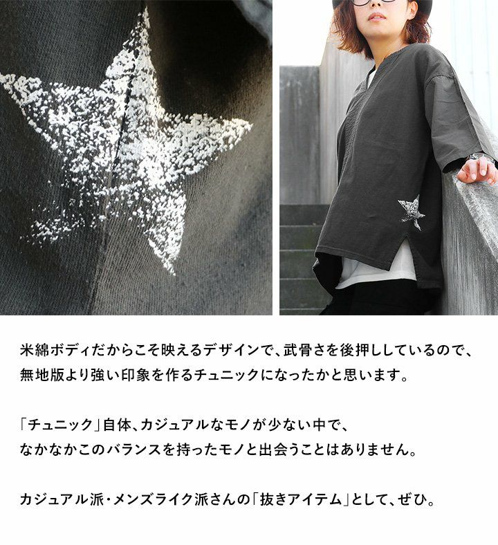 他の画像を見る 無骨なのに、抜け感上手な大人チュニック。 (アリステア) ALISTAIR 七分袖 チュニック スキッパーネック 異素材切り替え ワイド 星 スター プリント 販売価格 ¥ 4,950 税込 在庫切れ カートに入れる お気に入りに登録する
