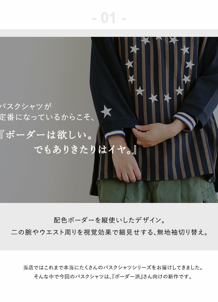 他の画像を見る シャツのようなきちんと感。長く着られる『日本製』七分袖ボーダーバスク。 バスクシャツ 七分袖 7分袖 ボーダー カットソー レディース 日本製 国産 コットン 綿100% ボートネック バスク ネイビー グリーン 紺 白 緑 後ろが長い カジュアル tシャツ 大人カジュアル 重ね着 半袖t ティシャツ ティーシャツ テイシャツ PATY パティ SAIL セイル 2~3日でお届け 販売価格 ¥ 5,390 税込 在庫切れ カートに入れる お気に入りに登録する
