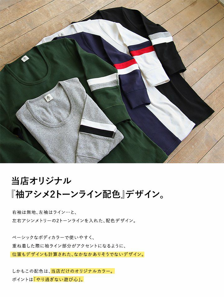 他の画像を見る 「そのTシャツ」も、ちょっとしたワンポイントで見違える! (ジーアルエヌ×パティ) GRN×PATY カットソー 7分袖 ロング丈 「配色 アシメ 2ライン」 Uネック 綿100% 販売価格 ¥ 2,090 税込 在庫切れ 詳細を見る お気に入りに登録する