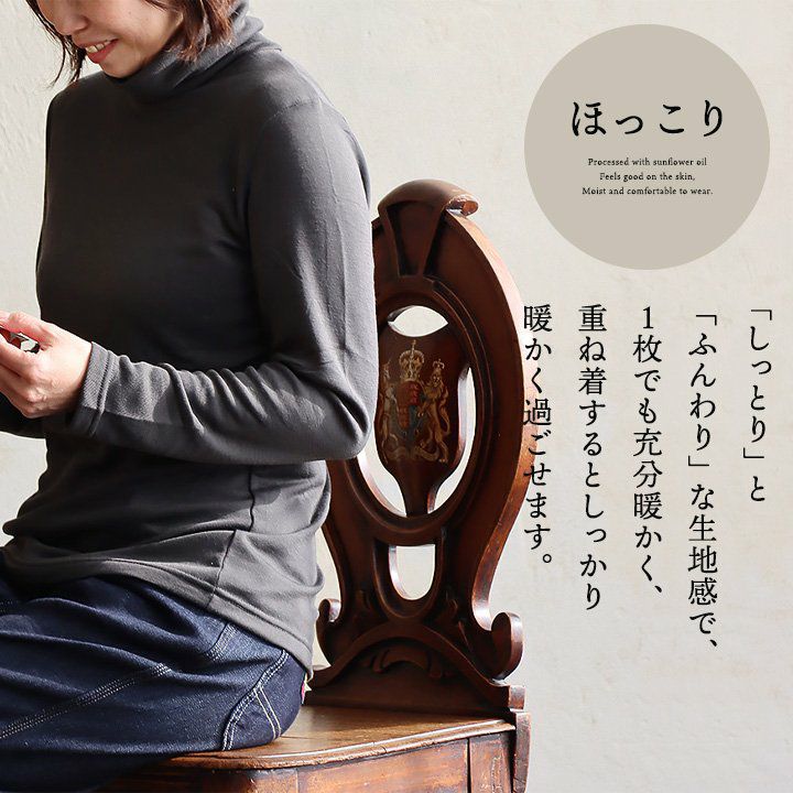 他の画像を見る しっとり、ふんわり、ほっこり。 【メール便50】 カットソー 長袖 レディース タートルネック 無地 裏起毛 ひまわりオイル加工 保湿 保温 暖かい 伸縮性 ストレッチ インナー 重ね着 秋 冬 カジュアル パティ 2~3日でお届け 販売価格 ¥ 2,530 税込 カートに入れる お気に入りに登録する