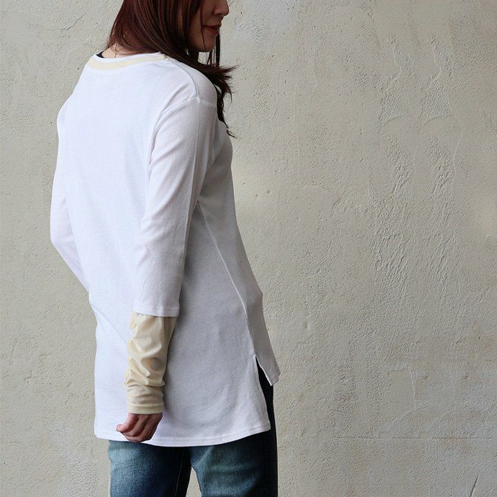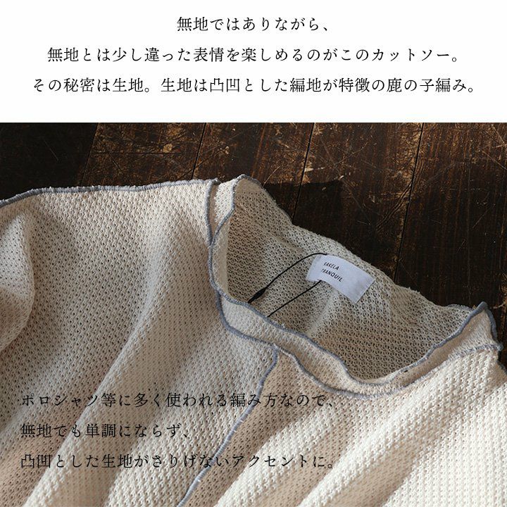 他の画像を見る 重ね着も一枚着も、重たく見えない自然な「抜け感とアソビ」。 KAKELA&TRANQUIL カケラ&トランクイル カットソー 長袖 レディース クルーネック 無地 綿100 コットン 天竺 鹿の子 異素材切り替え 配色 メロウ 体型カバー 秋 冬 春 カジュアル パティ 2~3日でお届け 販売価格 ¥ 4,950 税込 カートに入れる お気に入りに登録する