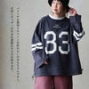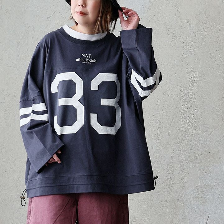 身体をすっぽり包み込み、崩れないアメカジバランス。 カットソー 長袖 レディース クルーネック ナンバリングプリント 配色ライン 綿100 コットン オープンエンド 天竺 大きいサイズ 体型カバー カジュアル アメカジ パティ en haut アンオー