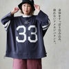 6. カットソー 長袖 レディース クルーネック ナンバリングプリント 配色ライン 綿100 コットン オープンエンド 天竺 大きいサイズ 体型カバー カジュアル アメカジ パティ en haut アンオー