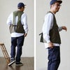 【モデルコメント】中は、タンクトップくらいが良いですね。すっきりとした着心地でした。 【客観的コメント】ごったくよりガッチリした人だと、フィット感は出ちゃいそうなサイジングだね。