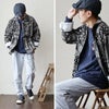 【モデルコメント】中は、タンクトップくらいが合わせやすそうです。フィット感が出ない程度にゆとりがあって、ジャストサイズって感じでした。 【客観的コメント】まもるくらいの体型なら、Mサイズで問題のないサイジングだね。