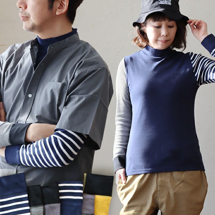 家事も仕事も1枚でも重ね着でも、すっきり楽々! カットソー 長袖 9分袖 ハイネック ロングtシャツ 重ね着 すっきり フィット 着痩せ しっかり 丈夫 ストレッチ 柔らかい レディース メンズ 綿100% コットン ロンT インナー トップス tシャツ ロング丈 クレイジー 配色 リブ パティ PATY パティ