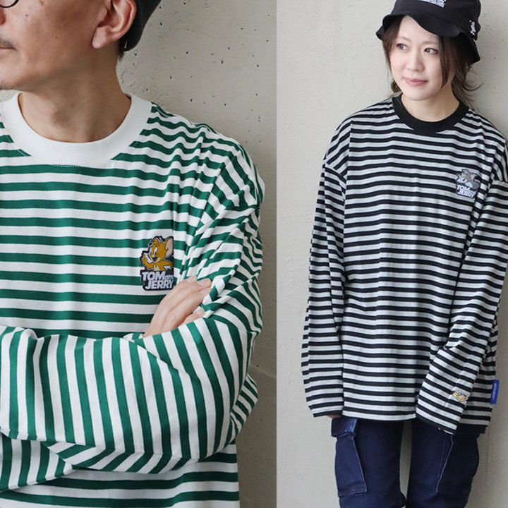間違いないボーダー、よく見ると…トムジェリ好きには堪らない!? ロンTEE 長袖 メンズ レディース クルーネック ボーダー トム&ジェリ― ワッペン コットン 天竺 伸縮性 しっかり生地 丈夫 ゆったり カジュアル PATY パティ