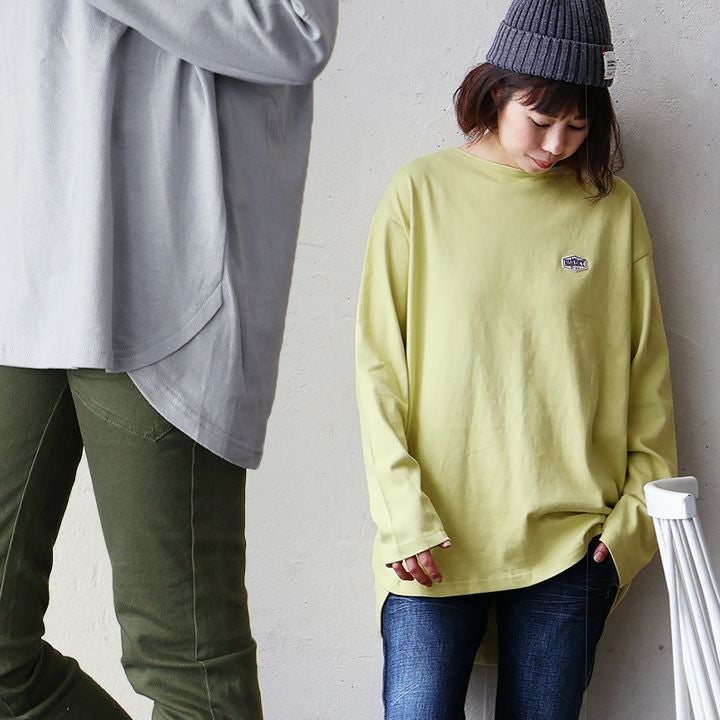 スウェットほど厚みがないから、軽くて、着痩せまで。 カットソー 長袖 レディース ボートネック ワンポイント お尻隠れる 着痩せ 無地 綿100% コットン 薄手 軽い 伸縮性 体型カバー 大きいサイズ カジュアル パティ