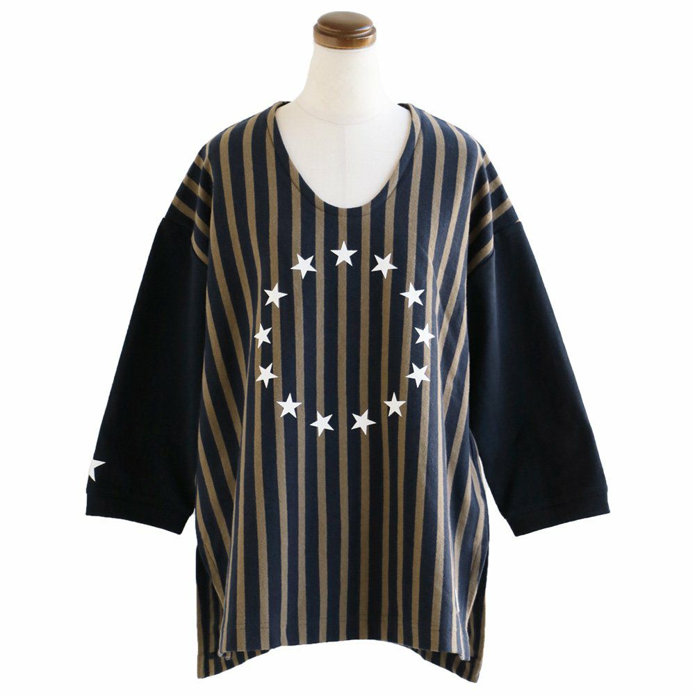 他の画像を見る 強くて丈夫。「ちょうど良いゆったり感」のプリント入り七分袖バスク。 (セイル) SAIL 七分袖 カットソー バスク ワイド スキッパーネック 配色 ストライプ 星 スター プリント 販売価格 ¥ 6,490 税込 在庫切れ カートに入れる お気に入りに登録する
