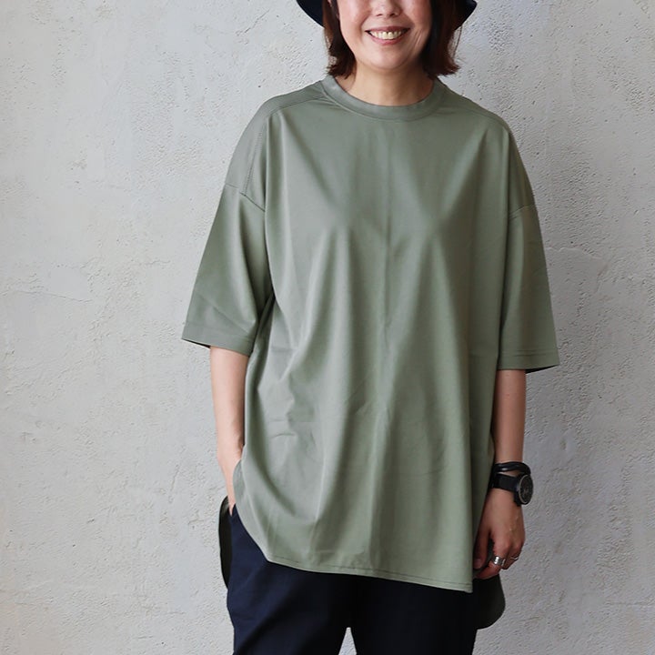 ベーシックな見た目に隠れた「涼しさ・カバー力」。 【メール便50】 Tシャツ 5分袖 レディース クルーネック 無地 お尻隠れる すっきり 着痩せ 接触冷感 薄手 涼しい ストレッチ 大きいサイズ 体型カバー カジュアル 夏 パティ