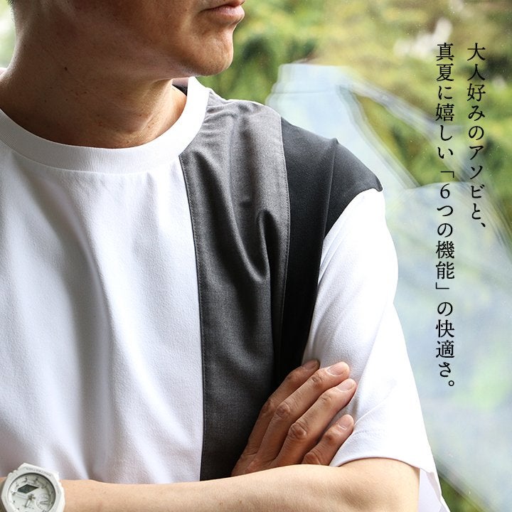 他の画像を見る わずらわしい重ね着も、これ一枚で完結。 【メール便50】 Tシャツ 半袖 ベスト メンズ レディース 重ね着風 フェイク レイヤード お洒落 ニットベスト ジャガード 伸縮性 接触冷感 涼しい ひんやり 涼しい カジュアル 夏 パティ 2~3日でお届け 販売価格 ¥ 4,290 税込 カートに入れる お気に入りに登録する
