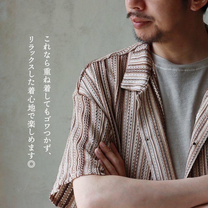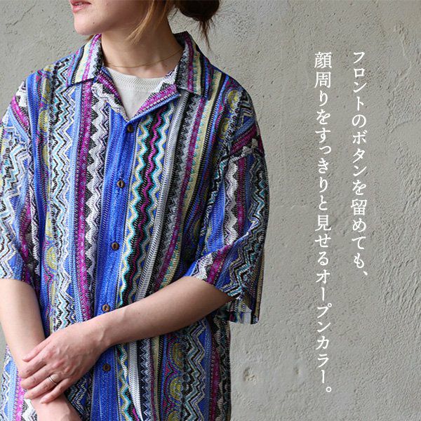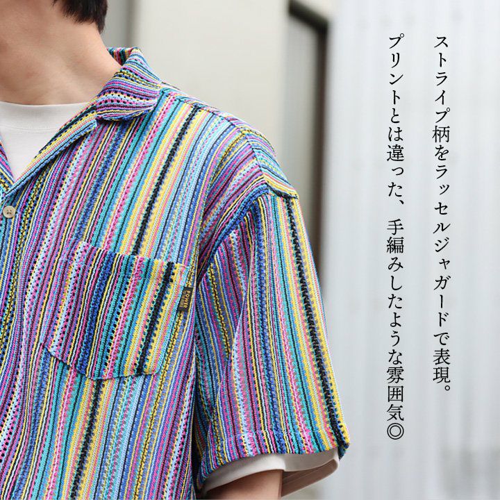 他の画像を見る 手編みしたような、目を惹く一枚。 開襟シャツ シャツ ラッセルシャツ 半袖 メンズ レディース ストライプ 総柄 派手 ニットシャツ 涼しい ゆったり 夏 夏服 カジュアル ヴィンテージ PATY パティ POWER vintage パワーヴィンテージ 2~3日でお届け 販売価格 ¥ 4,950 税込 在庫切れ カートに入れる お気に入りに登録する