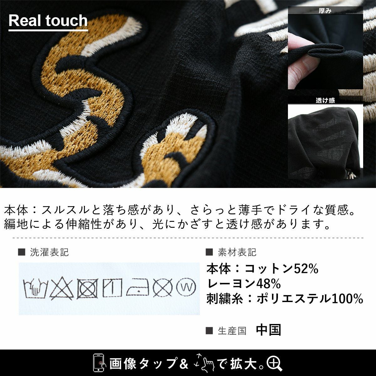 他の画像を見る 硬派な見た目で、涼しく心地良いというギャップ。 シャツ 開襟シャツ 5分袖 メンズ レディース チベタンタイガー トラ 虎 刺繍 コットン レーヨン 薄手 伸縮性 涼しい ゆったり 大きいサイズ カジュアル 夏 パティ 2~3日でお届け 販売価格 ¥ 6,490 税込 在庫切れ カートに入れる お気に入りに登録する