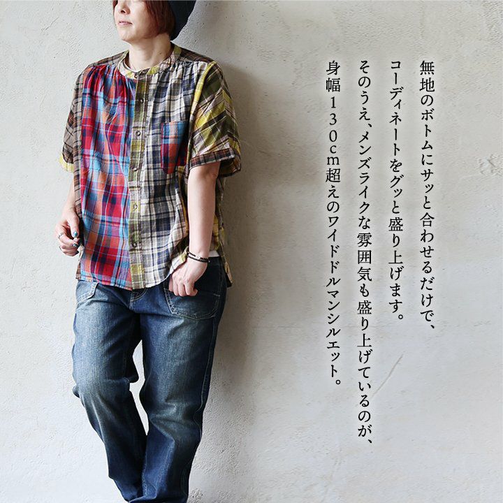 他の画像を見る 「個性」を出すなら、こんなクレイジーチェックで決まり。 シャツ 半袖 レディース バンドカラー チェック柄 クレイジー 配色切り替え 綿100 コットン 薄手 軽い 通気性 涼しい ゆったり 体型カバー カジュアル 夏 パティ CUBE SUGAR キューブシュガー 2~3日でお届け 販売価格 ¥ 7,590 税込 在庫切れ カートに入れる お気に入りに登録する