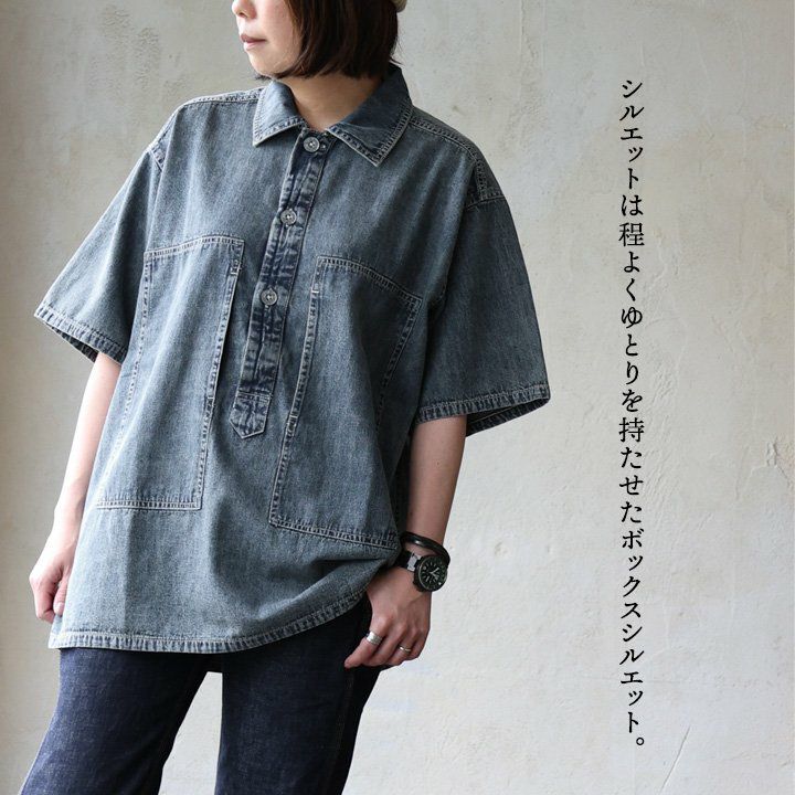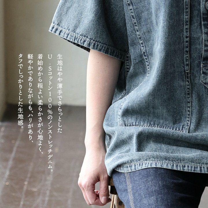 他の画像を見る 「名作シャツ」を現代的にアレンジ。 デニムシャツ 半袖 プルオーバー メンズ レディース 米綿 USAコットン 薄手 軽い しっかり生地 ステッチ ポケット ゆったり 大きいサイズ カジュアル ヴィンテージ 夏 パティ HOUSTON ヒューストン 2~3日でお届け 販売価格 ¥ 8,250 税込 在庫切れ カートに入れる お気に入りに登録する