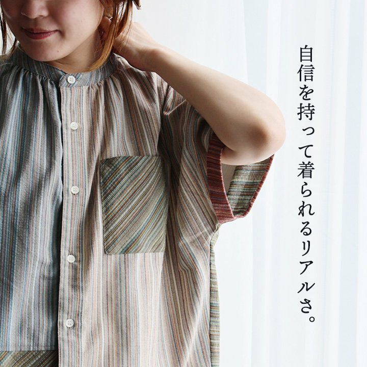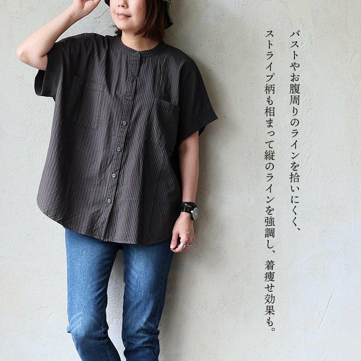 他の画像を見る ちょっとしたアソビが、大きな差。 【メール便50】 シャツ 半袖 レディース バンドカラー 薄手 通気性 綿100 コットン ストライプ 軽い ゆったり 大きいサイズ 体型カバー カジュアル 夏 パティ le colis ルコリ 販売価格 ¥ 5,390 税込 在庫切れ カートに入れる お気に入りに登録する