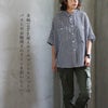 薄手で滑らかなコットン100%生地。ふわっと柔らかで軽やかな肌当たり。伸縮性は若干斜め方向にあり、ほんのりと透け感のあるシャツになっています。