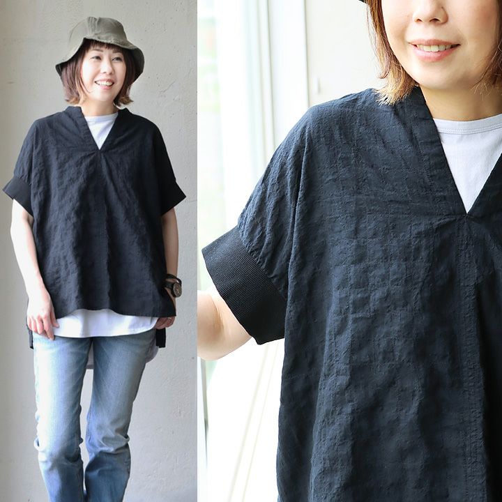 丁寧に仕上げられているからこそ、ラフに着られる。 チュニック シャツチュニック 半袖 レディース お尻隠れる 着痩せ スキッパーネック 薄手 軽い 涼しい 袖リブ ゆったり 大きいサイズ 体型カバー カジュアル 大人 夏 パティ