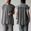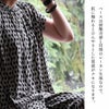 涼しくて、見入ってしまう不思議な柄。 【メール便50】 シャツ 半袖 フレンチスリーブ レディース バンドカラー セットアップ 総柄 モノクロ レーヨン リネン 薄手 通気性 涼しい 軽い ゆったり 大きいサイズ 体型カバー カジュアル パティ