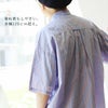さらっとした触り心地もありながら滑らかで柔らかい質感です。薄手で清涼感のある軽やかな着心地。伸縮性はやや斜め方向にあり、光にかざすと若干透け感があります。