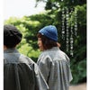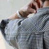 薄手でややハリ感があり、生地全体に凹凸のあるシアサッカー地。サラッとした触り心地で、軽やか。伸縮性はなく、光にかざすと透け感があります。