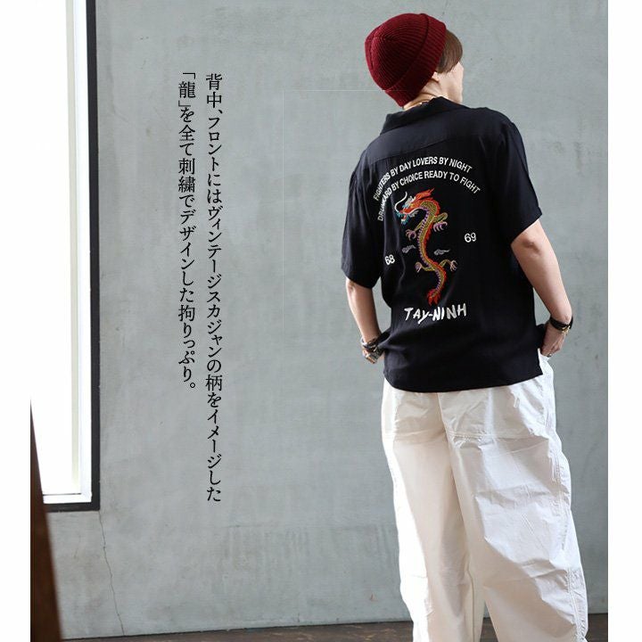 他の画像を見る ブラックに映える「龍」。 スーベニアシャツ 開襟シャツ シャツ 半袖 メンズ レディース 刺繍 龍 無地 薄手 軽い 涼しい 通気性 ゆったり カジュアル ヴィンテージ パティ HOUSTON ヒューストン 2~3日でお届け 販売価格 ¥ 10,780 税込 在庫切れ カートに入れる お気に入りに登録する