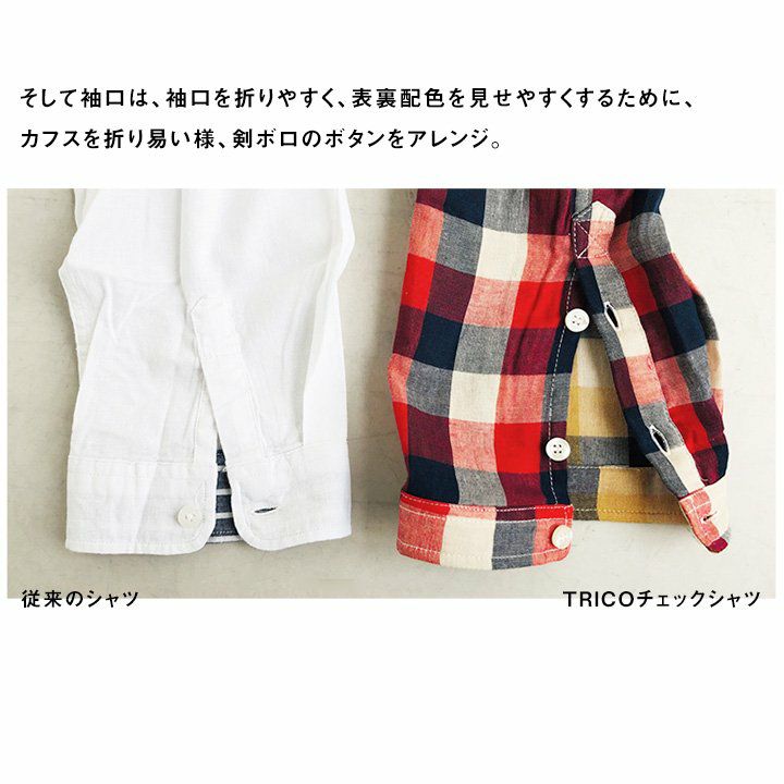 他の画像を見る こんな『裏』があるから、飽きずにずっと心地良く。 (トリコ) TRICO 七分袖 シャツ バンドカラー 「表裏 配色 チェック柄 Wガーゼ」 綿100% 変形 剣ボロデザイン 販売価格 ¥ 5,390 税込 在庫切れ 詳細を見る お気に入りに登録する