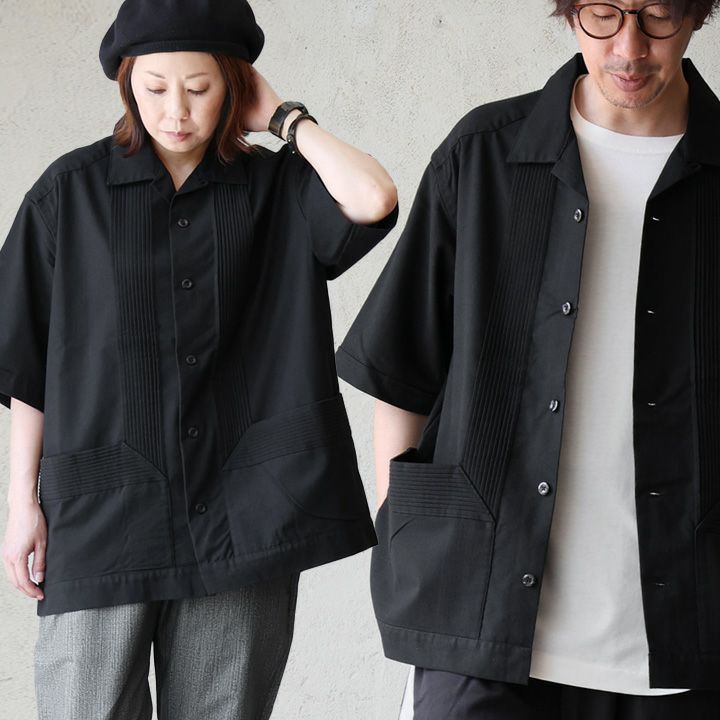 クラシカルな夏羽織。 シャツ 開襟シャツ オープンカラー 5分袖 メンズ レディース 重ね着 コットン リネン 薄手 通気性 ピンタック ポケット 大きいサイズ 体型カバー カジュアル 夏 パティ Audience オーディエンス