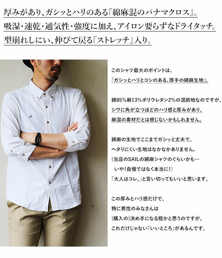 他の画像を見る 大人はコレ。このハリ、この伸び、この厚み。 (アリステア) ALISTAIR 七分袖 シャツ パナマシャツ ボタンダウン レギュラー 綿 麻 ストレッチ 販売価格 ¥ 3,190 税込 在庫切れ 詳細を見る お気に入りに登録する